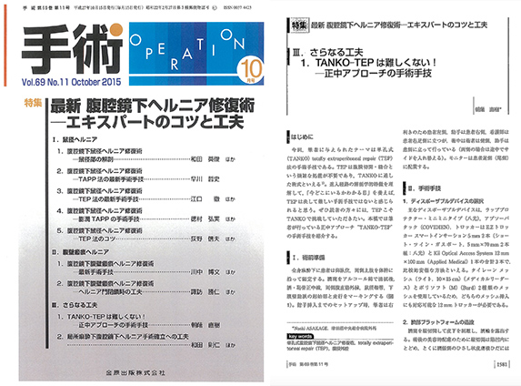 金原出版(株)医学雑誌【手術(10月号)】に当院外科・朝蔭直樹医師の特集記事が掲載されました。